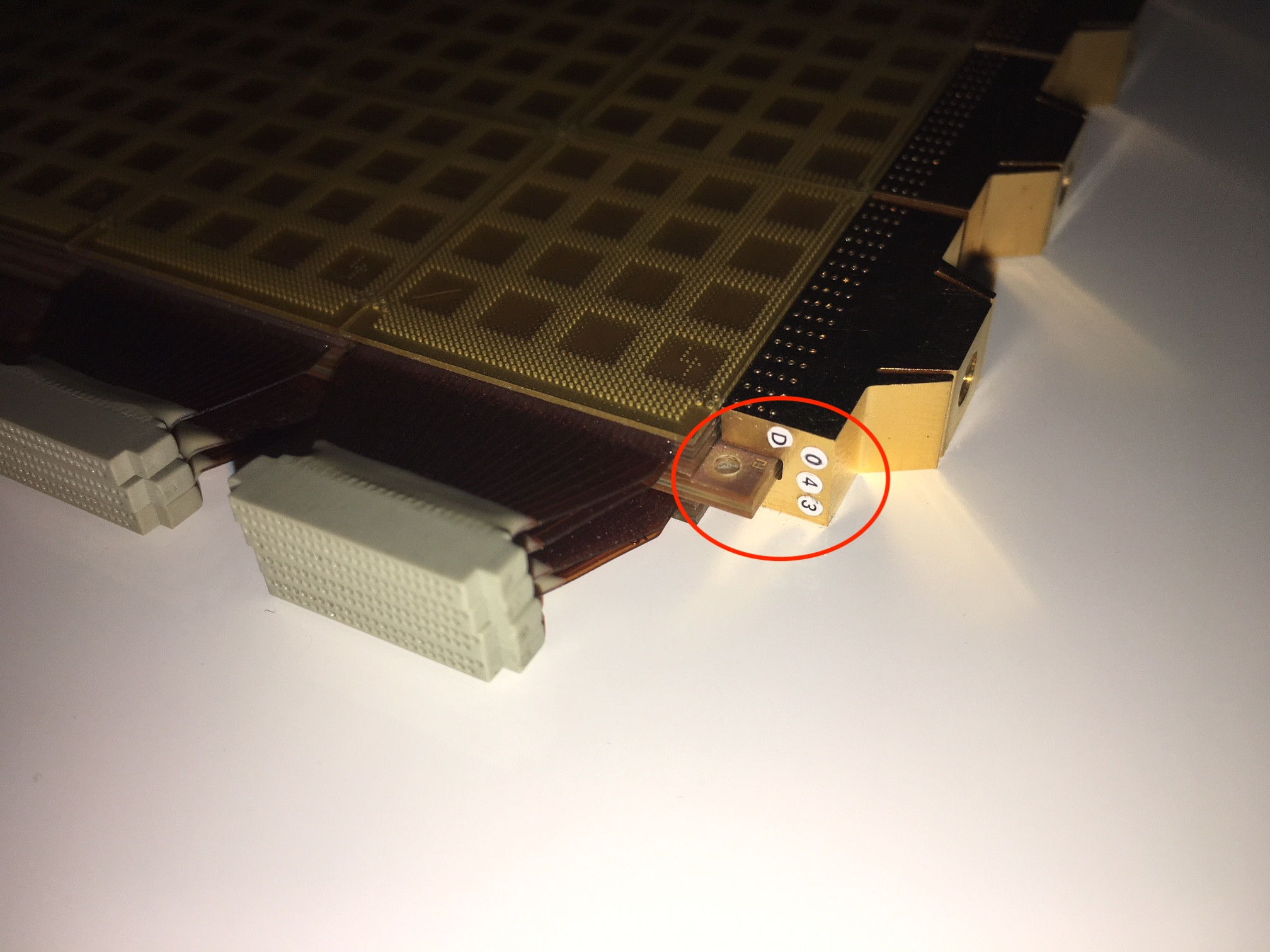 A closeup of the Cray 3 module with the encircled numbering showing that it's a "D" module